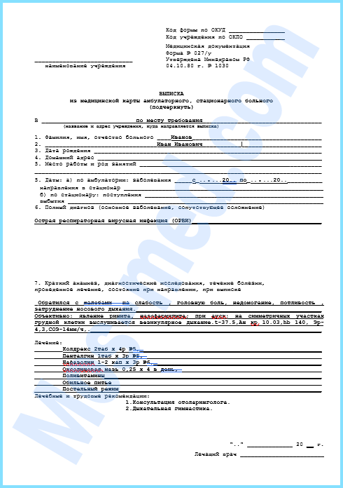 • Подтверждение болезни на работе — работодатели в Долгопрудном часто требуют выписку 027/у вместо обычной справки о болезни для подтверждения длительного отсутствия.